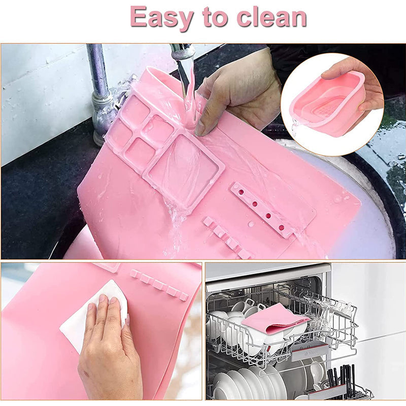 - 🔎 The silicone craft mats are large enough to prevent paint splashes and have waterproof grooves around the edges to prevent them from escaping, the silicone mats prevent scratching and soiling your table and keep it neat and tidy.